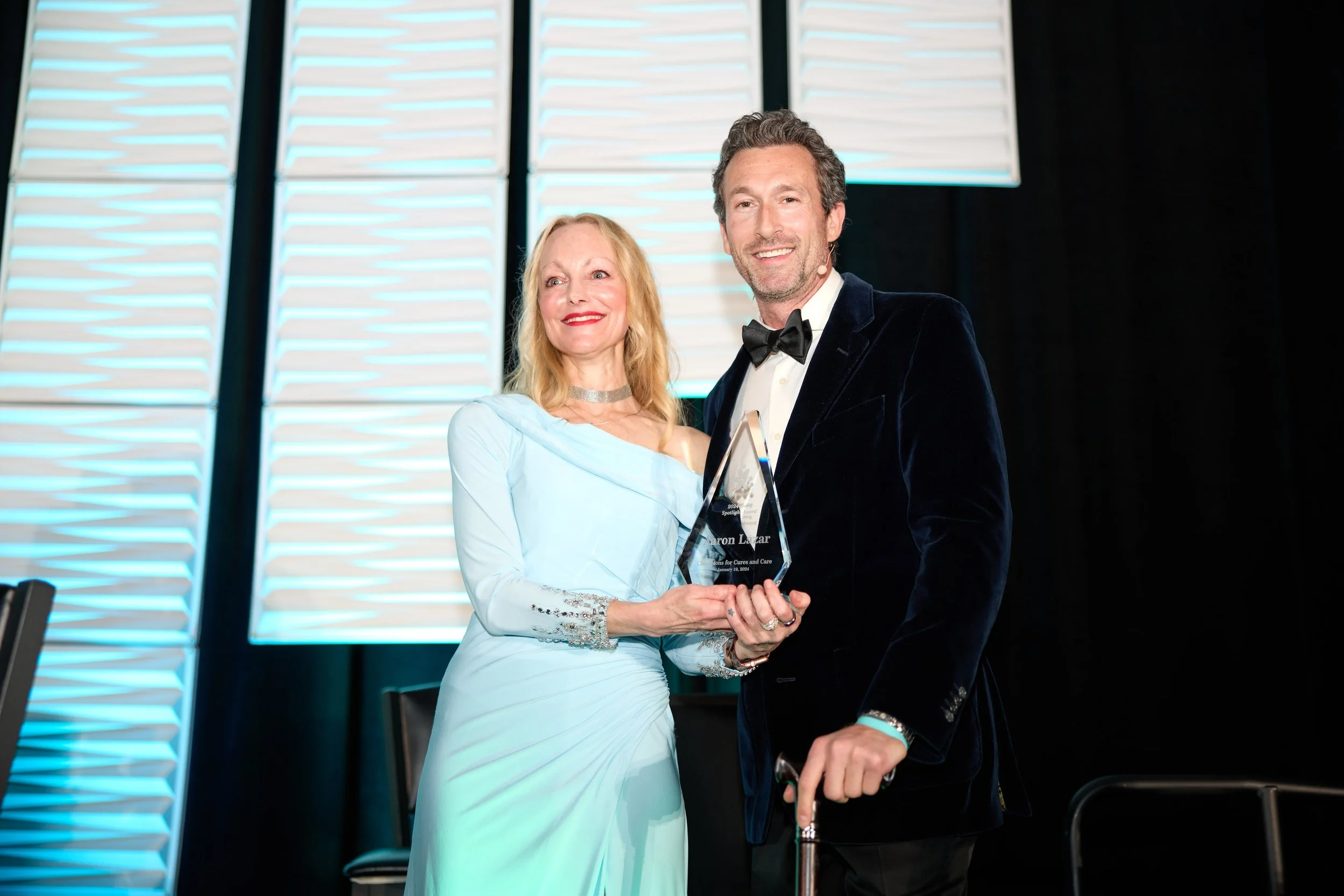On January 19, 2024, The ALS Network honored Aaron with the Essey Spotlight Award for his commitment to raising global awareness of ALS.